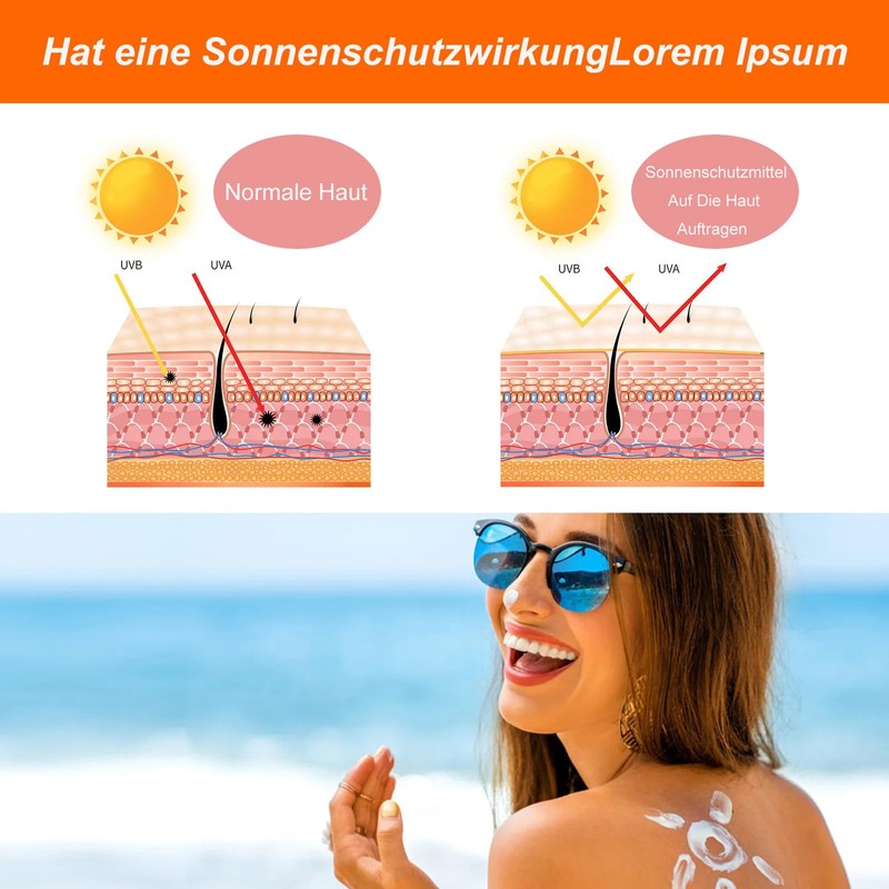 Anti-Aging-Effekt: Schützt vor Falten, feinen Linien und Hautverfärbungen, die durch UV-Strahlen verursacht werden, und bewahrt ein jugendliches Hautbild.