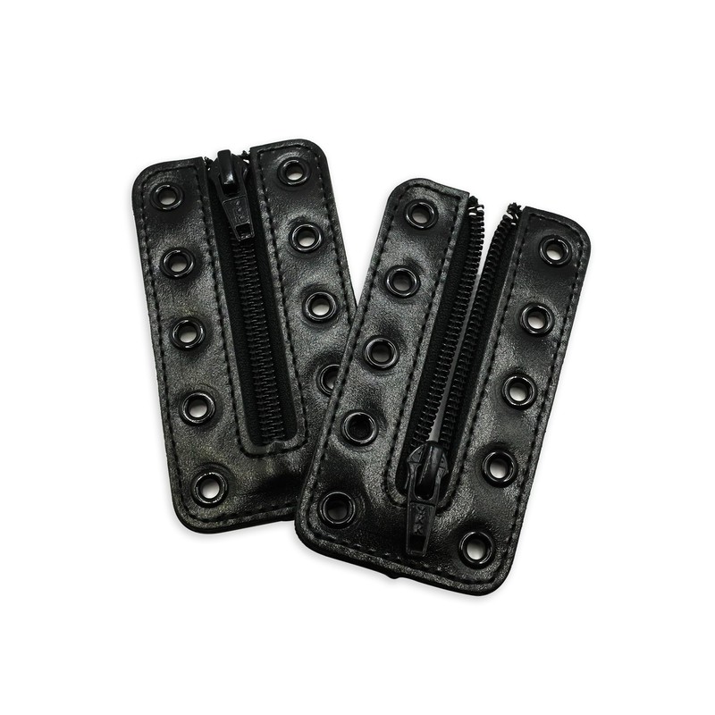 Soletec Leather Lace-in Boot Zipper Inserts for All Brands, Tieless Shoe Laces, 5 Black Eyelets, 1 Pair, Black