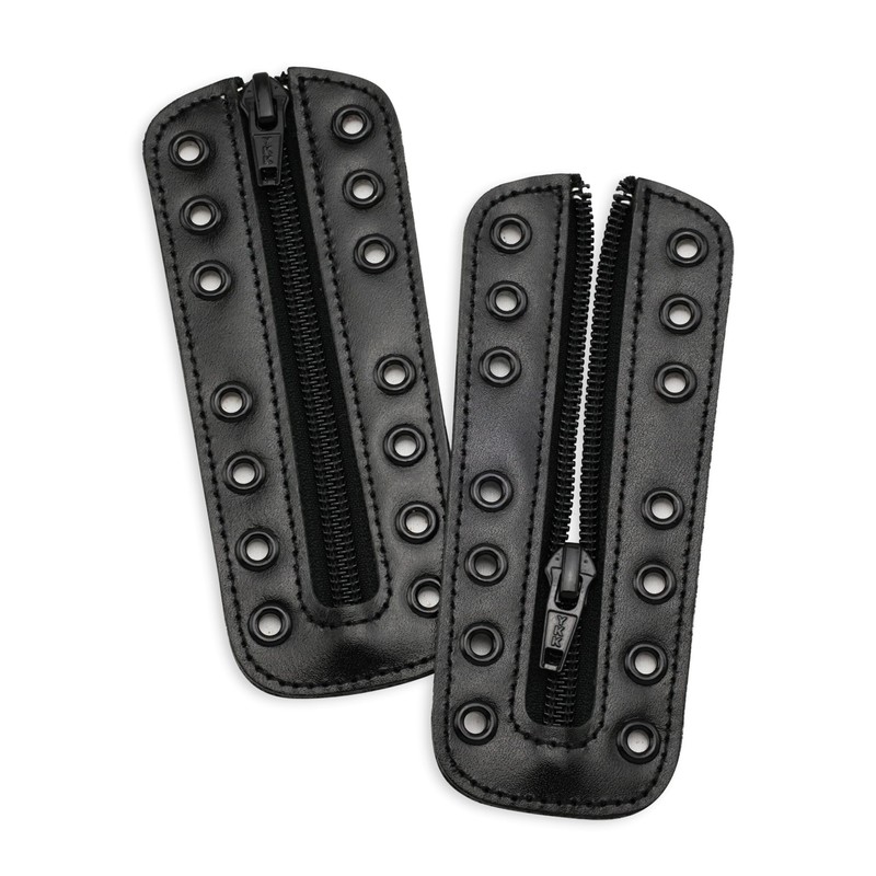 Soletec Leather Lace-in Boot Zipper Inserts for All Brands, Tieless Shoe Laces, 7 Non Isometric Black Eyelets, 1 Pair, Black