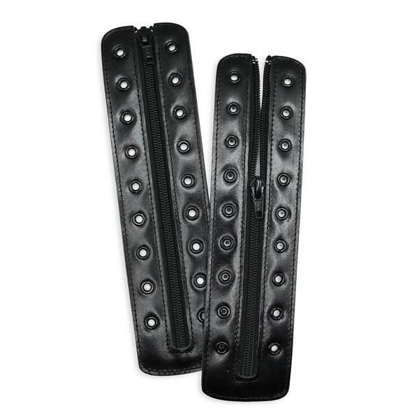 Soletec Leather Lace-in Boot Zipper Inserts for All Brands, Tieless Shoe Laces, 9 Black Eyelets, 1 Pair, Black
