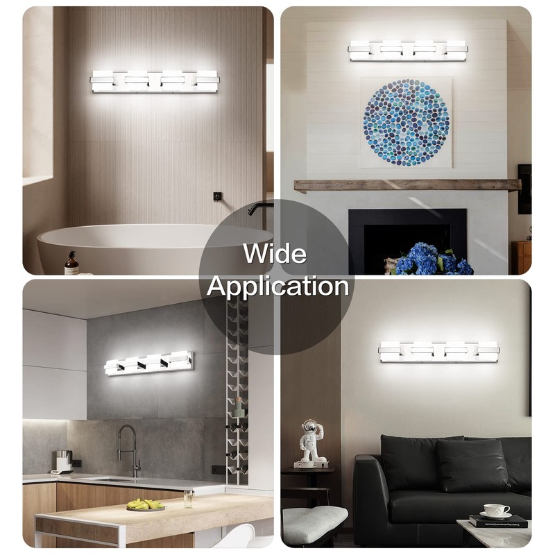 - 8.【Wide Application】Abundant Lighting is bright and no dazzling, more efficient than conventional light bulbs. Can choose the dimmable function. IP44 level waterproof, anti-corrosion and moisture-proof, can get through years of usage. Ideal for bathroom mirrors, powder room, bed, doorway or entryway, and porch or corridor.