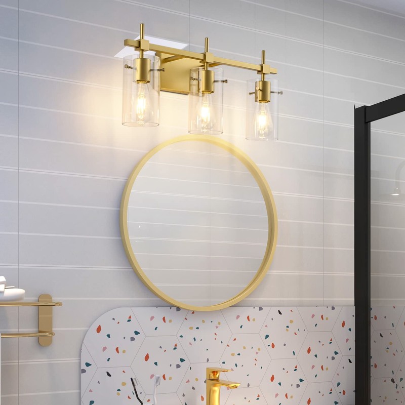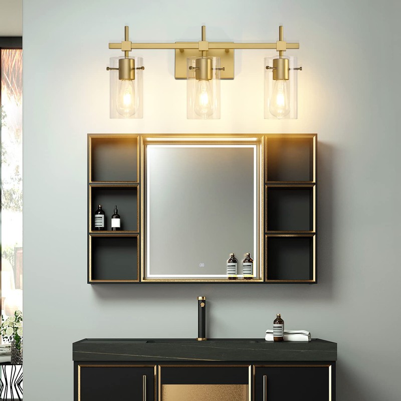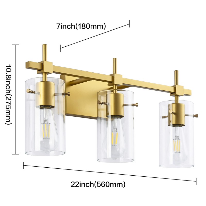 - 3.【LONG LASTING & DURABL】Solid thick glass lampshade,this vanity lighting fixtures features a robust all-aluminum construction, including a aluminum securing ring that firmly holds the glass shade.Advanced electroplate craft,and sealing technology. Anti-corrosion and moisture-proof, great for humid spaces like bathrooms.