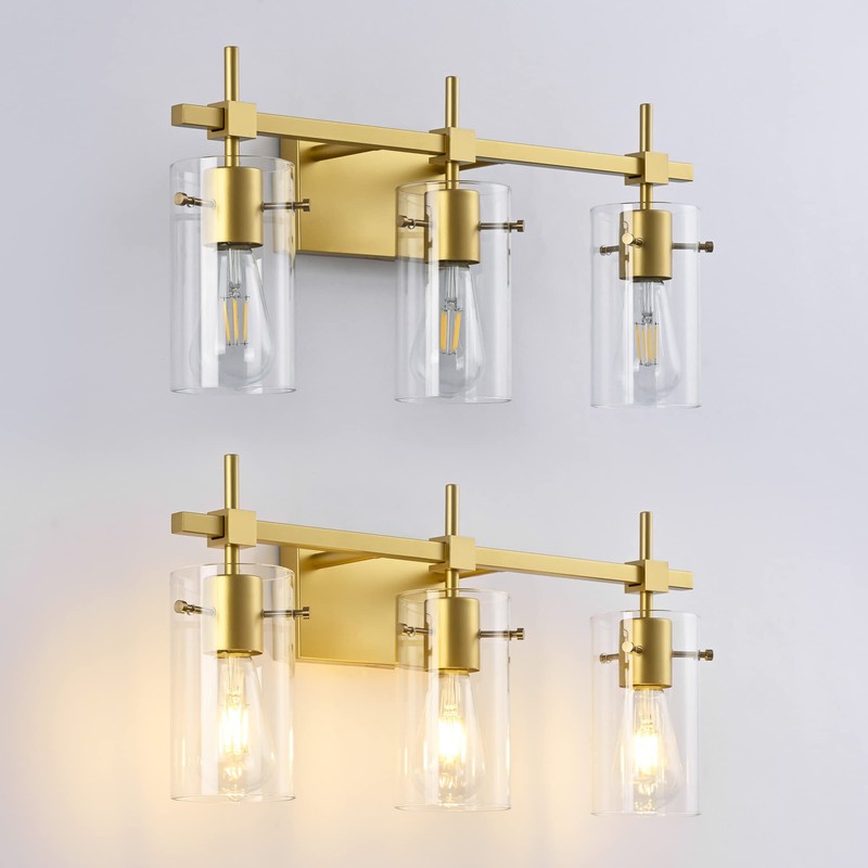SOLFART Gold 3 Lights Bathroom Light Fixtures for Mirror Vanity Lights Bathroom Vanity Light Wall Sconce