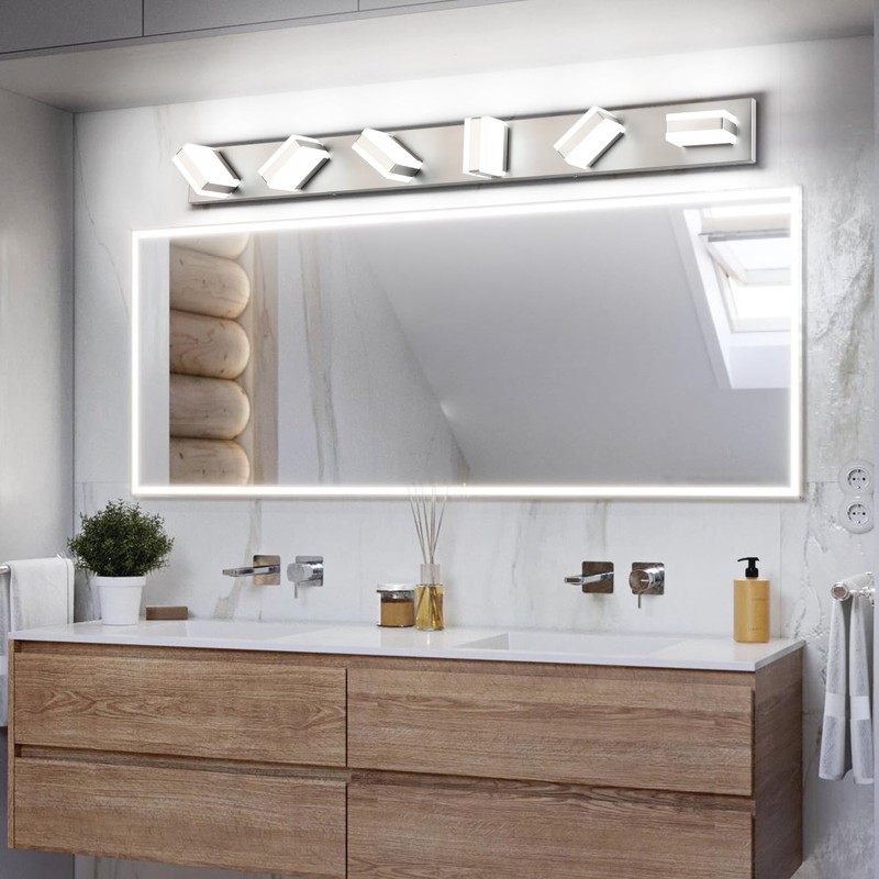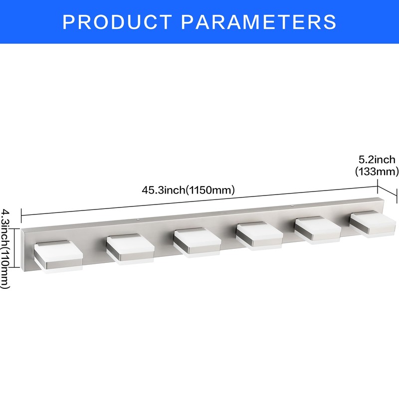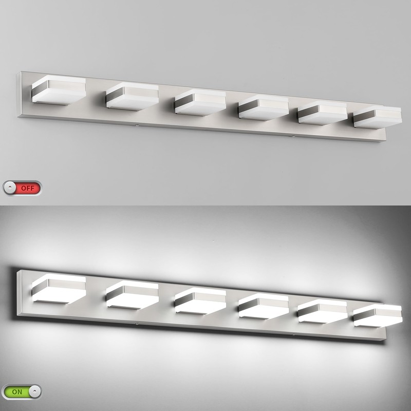 - 1.【EASY TO INSTALL】15-Minutes Easy Installation, LED 48 watts, hardwired, no assembly required, USA standard back plate. This modern brushed nickel 6 lights bathroom lighting fixtures over mirror directly connects to the reserved wire, and then mounts to the wall.