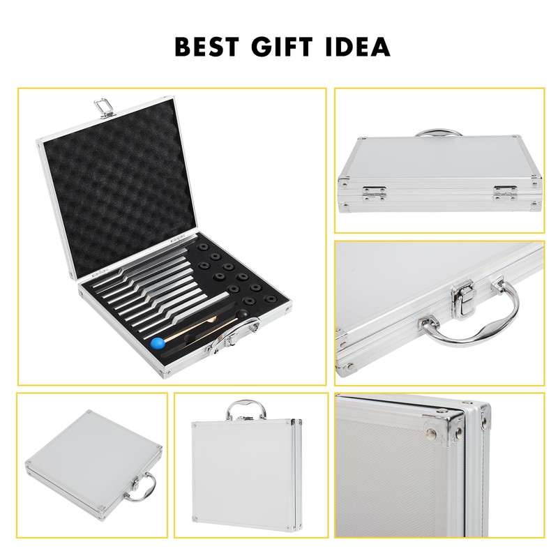 - Easy to Store: Our tuning forks come with a beautiful aluminum box. After each use, you can wipe the dust off the tuning fork with the provided cleaning cloth and put it back in the drying box. This can avoid damage to the tuning fork and is convenient for storage and carrying.