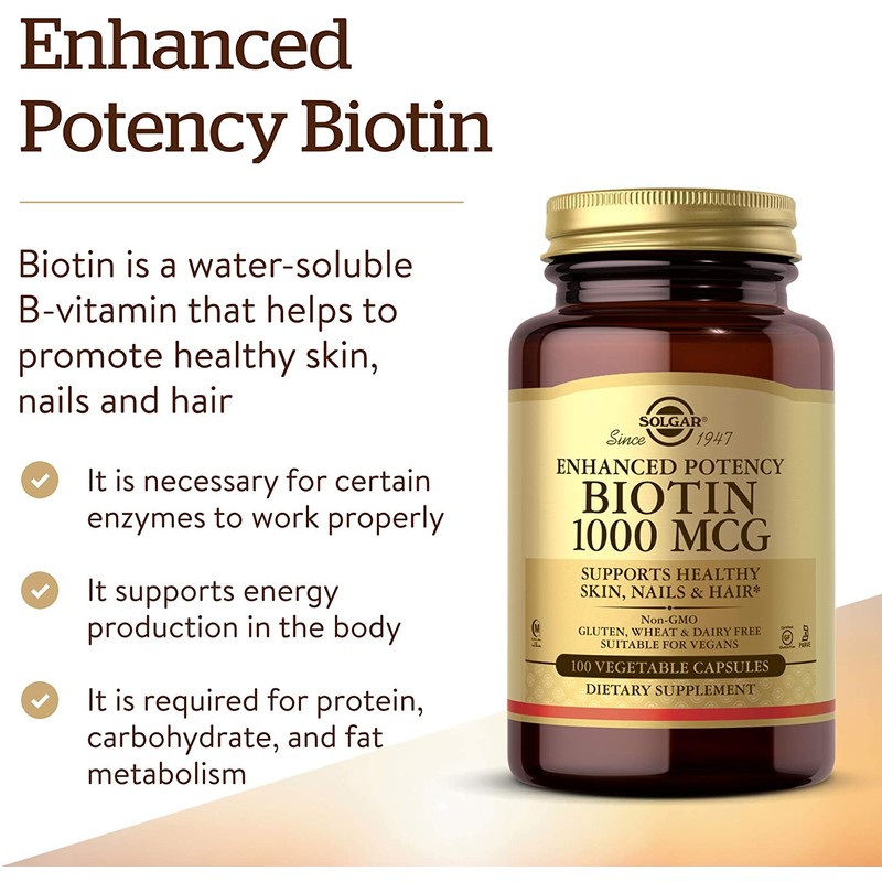 Solgar - Biotin 1000 mcg, 100 Vegetable Capsules by Solgar Store