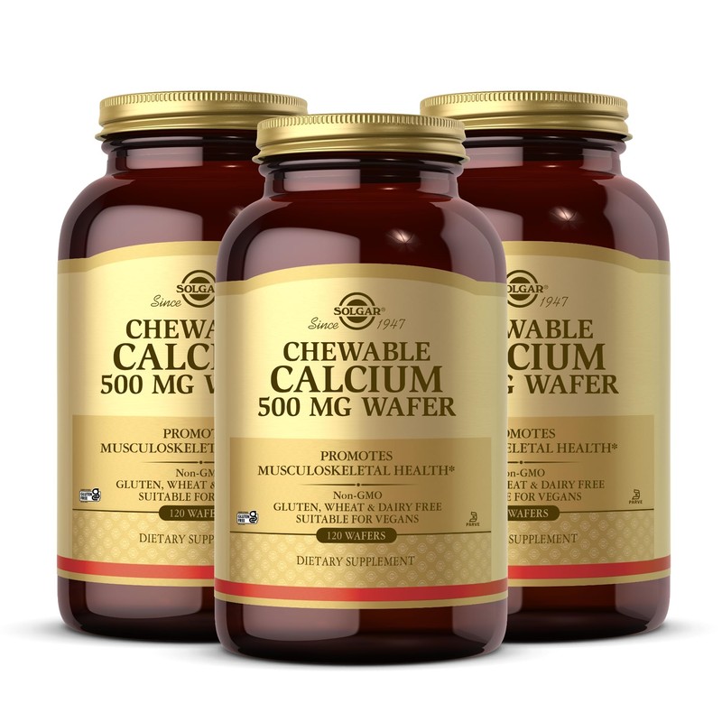 Solgar Chewable Calcium 500 mg - 120 Wafers, Pack of 3 - Promotes Musculoskeletal Health - Non-GMO, Vegan, Gluten, Wheat & Dairy Free, Kosher - 180 Total Servings
