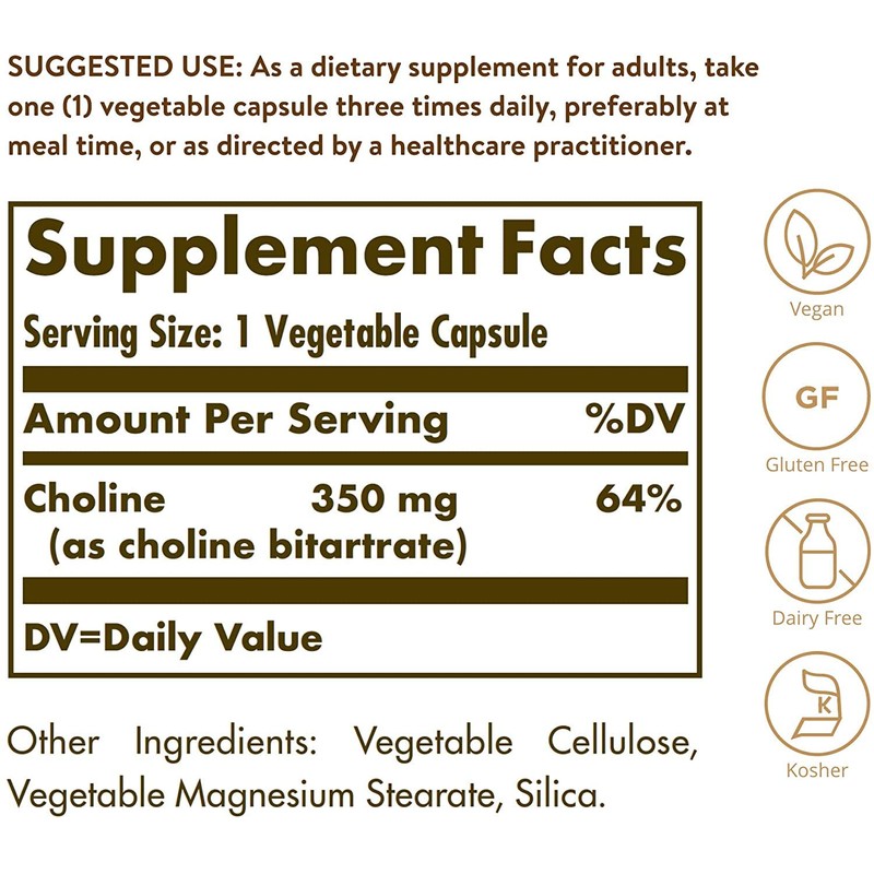 Solgar Choline 350mg 100 Vcaps 2-Pack