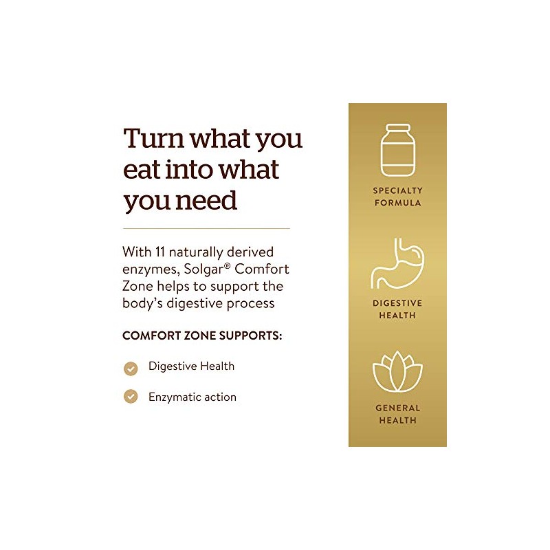 - Advanced Digestive Complex; With 11 naturally derived enzymes, Solgar Comfort Zone helps to support the body’s natural digestive process