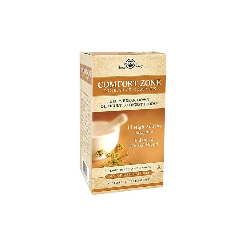 SOLGAR COMFORT ZONE, HELPS BREAK DOWN DIFFICULT TO DIGEST FOODS 90CAPSULES