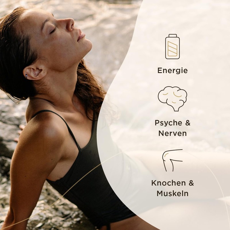 - Balanced energy level: magnesium supports normal protein synthesis, thus contributes to energy metabolism, more precisely in the degradation and utilization of carbohydrates, proteias, etc. In addition, the mineral supports the electrolyte balance and is important for maintaining and stabilising the cell membrane, so it is also indispensable for muscle function.