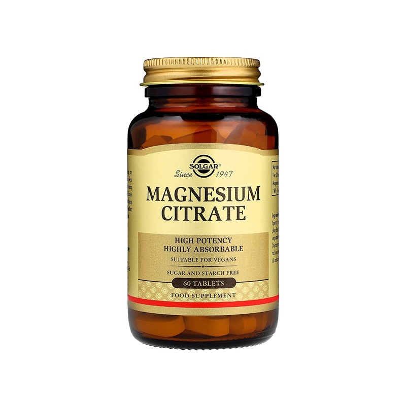 Foods high in magnesium include dark leafy greens, nuts, seeds, fish, beans, wholegrains, avocados, yogurt, bananas, dried fruit and dark chocolate. Solgar Magnesium Citrate Tablets provides 100% magnesium citrate. This product is suitable for vegans, vegetarians, kosher diets. Magnesium plays a part in several important functions in our body, these include contribution to reduction of tiredness and fatigue, electrolyte balance, normal energy-yielding metabolism, functioning of the nervous system, normal muscle function, normal protein synthesis, normal psychological function, maintenance of normal bones, maintenance of normal teeth and a role in the process of cell division.