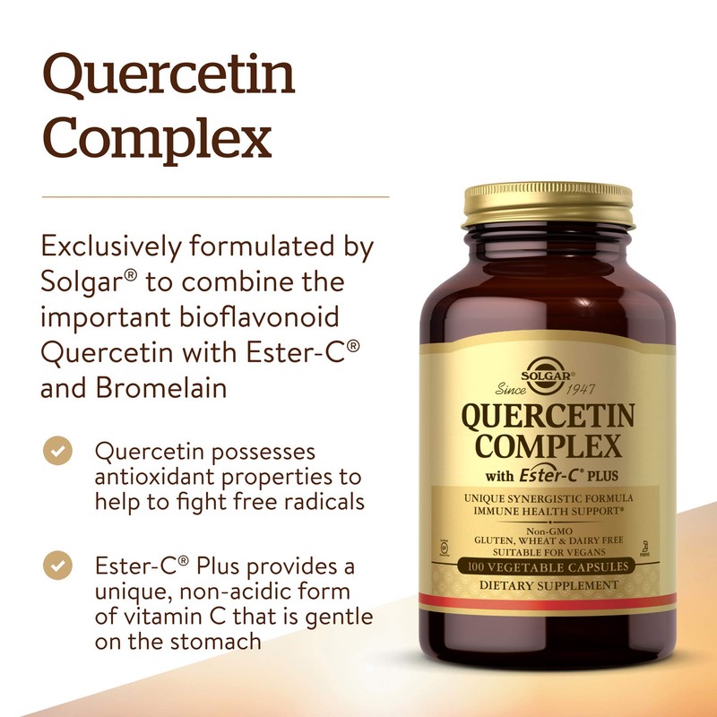 Solgar Quercetin Complex with EsterC Plus Vegetable Capsules Supports Immune Health Antioxidant Gentle on the Stomach Vitamin C NonGMO Vegan Gluten Free Dairy Free 50 Servings, Standard Packaging, 100 Count