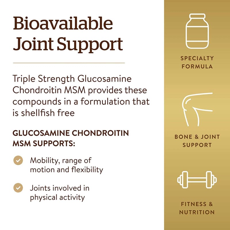 Solgar Solgar Triple Strength Glucosamine Chondroitin MSM, 120 Tablets - Promotes Healthy Joints, Supports Comfortable Movement - Shellfish Free - Gluten Free, Dairy Free - 60 ServingsItem Specifics