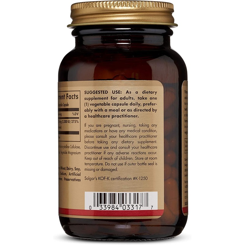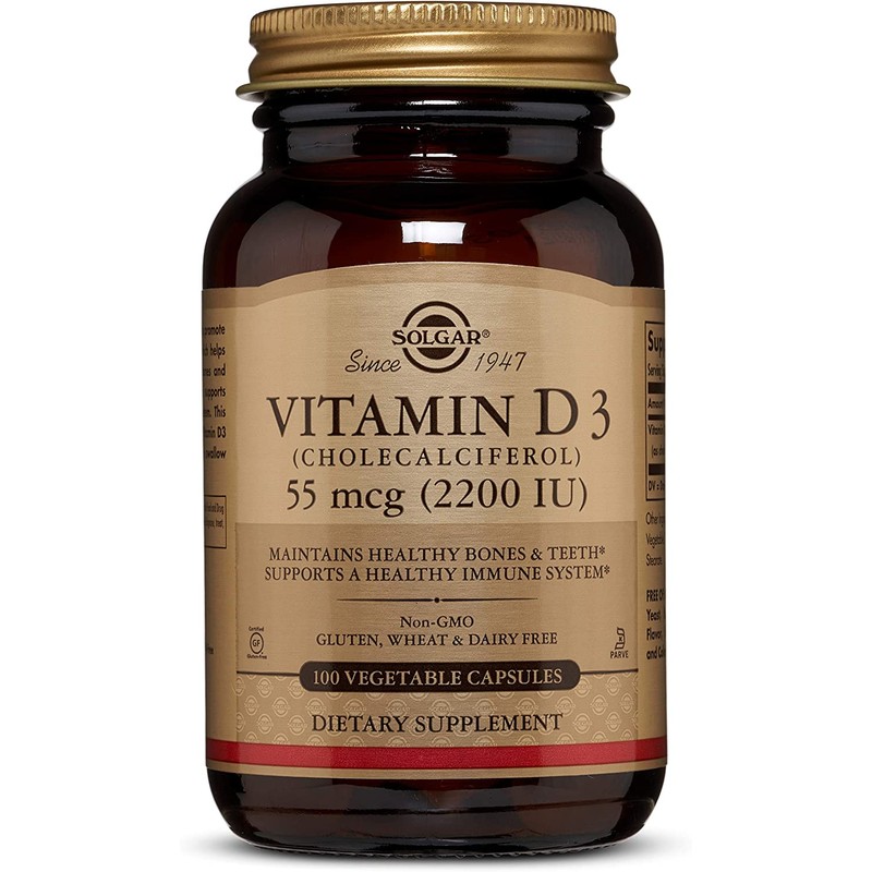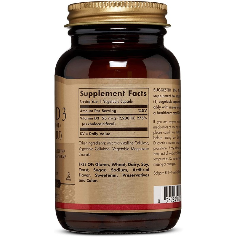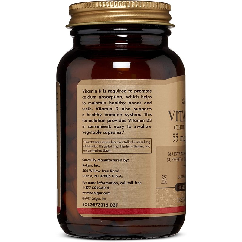 Solgar Vitamin D3 (Cholecalciferol) 55 mcg (2200 IU) Vegetable Capsules - 100 Count