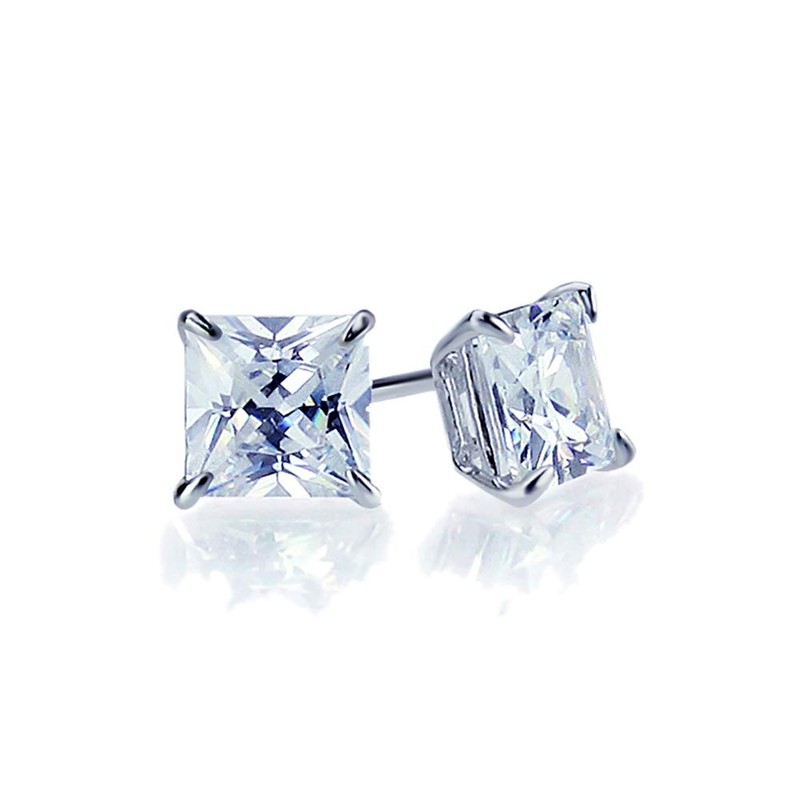 - 4-PRONG BASKET SETTING: Our princess cut CZ solitaire stud earrings bring grace and style to your everyday style. The 4-prongs let the beauty of the gemstone shine through while the horizontal bands connect the prongs and wrap around the gem for a sturdy basket setting. A classic look that will never go out of style.