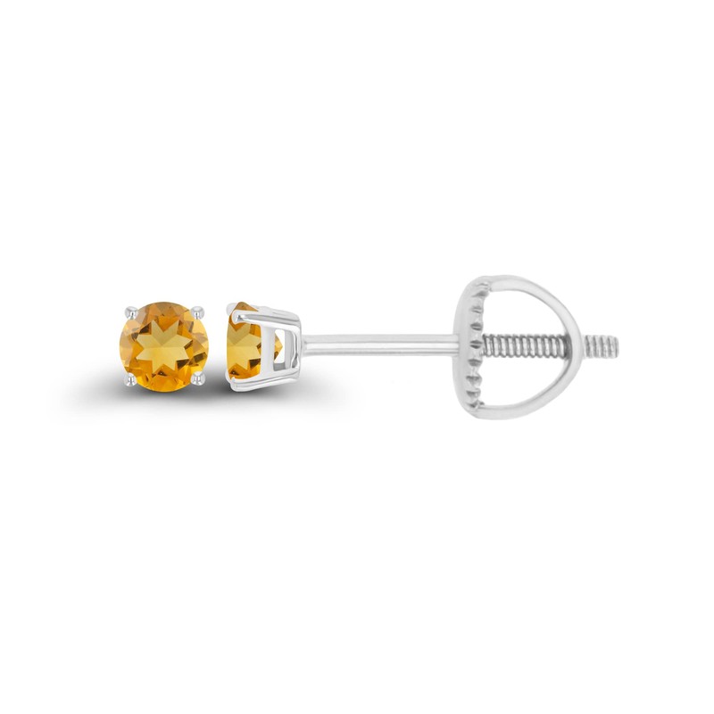 - Citrine: This 14K White Gold 3mm Round Citrine Stud Screwback Earrings features 2 gemstones with a total carat weight of 0.20 CTW.