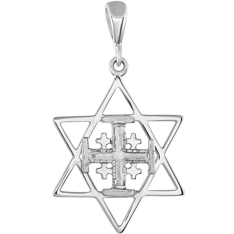 - This Elegant Jewish Star of David with a Christian Cross Charm Pendant represents people with beliefs of both Christianity & Judaism. It is Finished with a Glimmering High Polished Finish & an Elaborate Diamond Cut Style Design