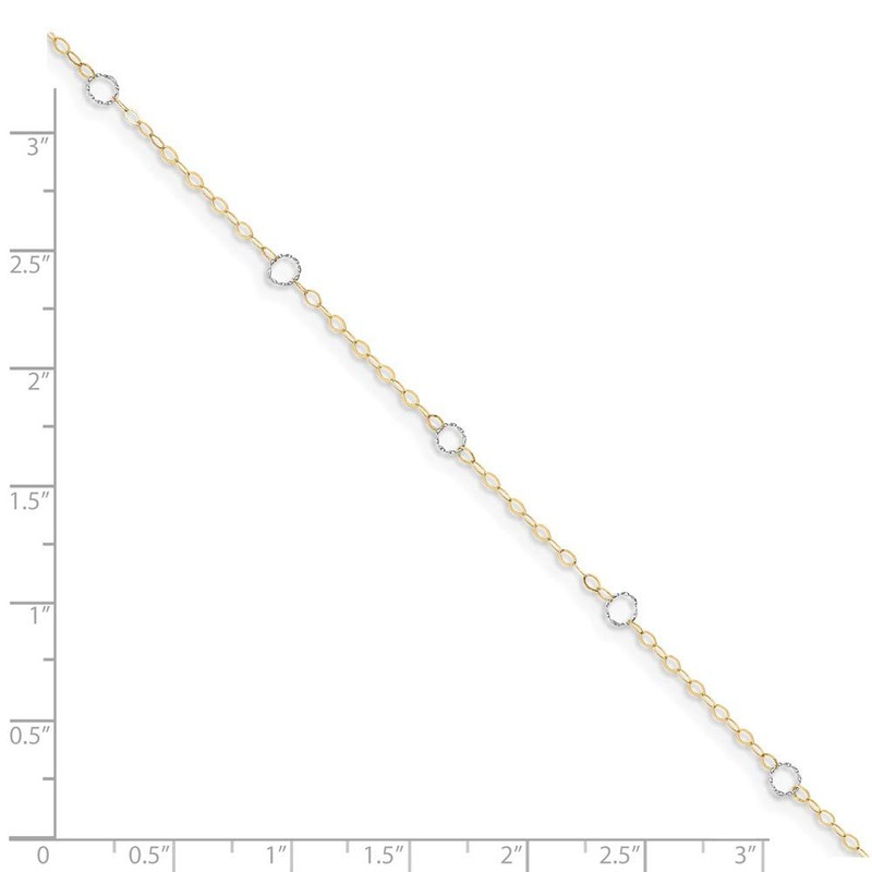 Solid 14k Yellow and White Gold Two Tone Adjustable Circle Anklet 9"