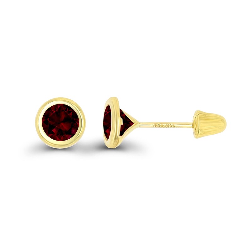 • Garnet: This 14K Yellow Gold Basic 4mm Round Garnet Bezel Hat Screw Back Stud Earrings features 2 gemstones with a total carat weight of 0.66 CTW.
