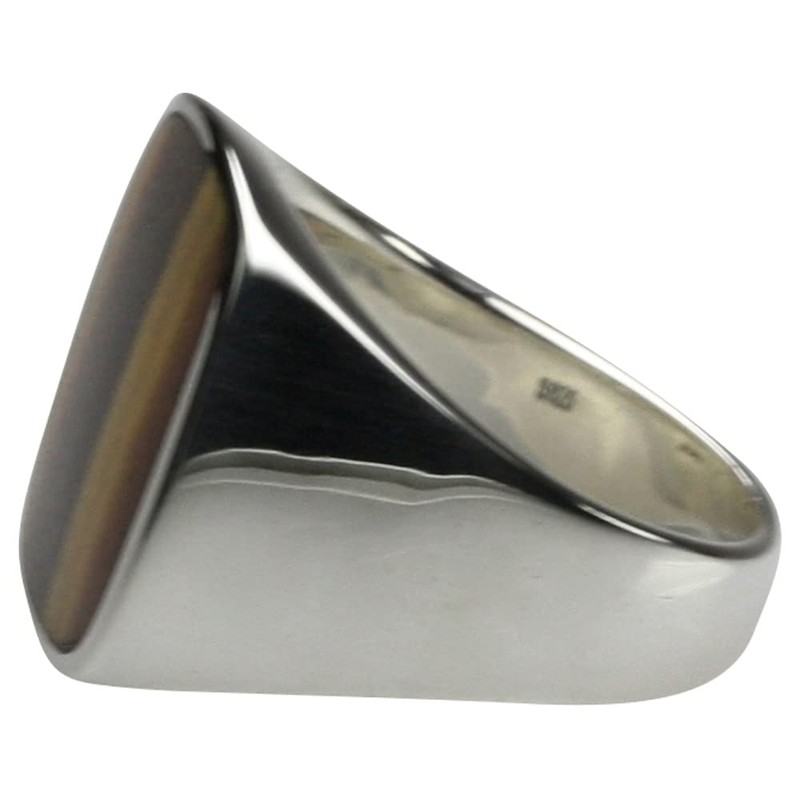 Solid 925 Silver Signet Ring with Tiger's Eye, Silver