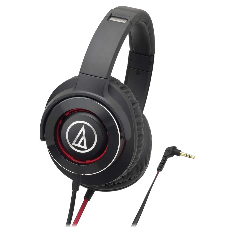 オーディオテクニカ SOLID BASS ポータブルヘッドホン 重低音 ブラックレッド ATH-WS770 BRD