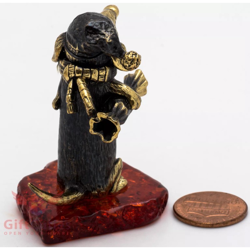 Solid Brass Amber Figurine of Dachshund in Nightcap with candy bar Dog IronWork