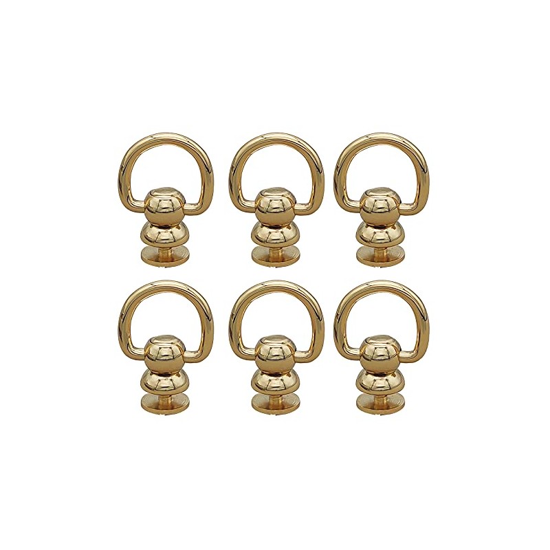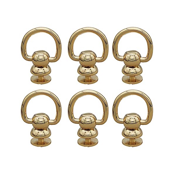 Solid Brass Ball Studs 6Sets Leather Rivets with D Ring Chicago Screw Back 360 Degrees Free Rotation for Belt Dog Collar Bag Handle Connector (D Ring Size 14mm, Shiny Light Gold)