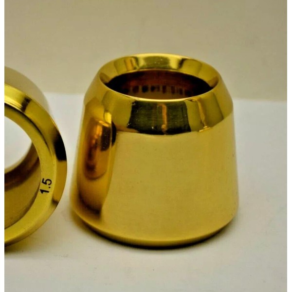 This is one follower for sale, Feel free to order more. + Here we have brand new sturdy solid brass candle followers for 1 1/2" diameter candles + + Brand New, Never Used + Polished brass and lacquered + + Some of the best available + + Here at about -50% off list prices + These list for $34 each, get them here SPECIAL for just $18 each + s/h. We have 100 pieces in stock for fast shipping so you can order as many as you need. + Feel free to call us with any questions: from 9am - 5pm (eastern) +