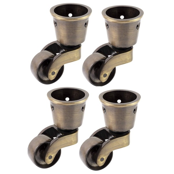Solid Brass Castors Casters with 28mm Wheel (Set of 4) – Genuine Solid Brass - Antique Vintage Effect – Cup Style Fitting – UK Company