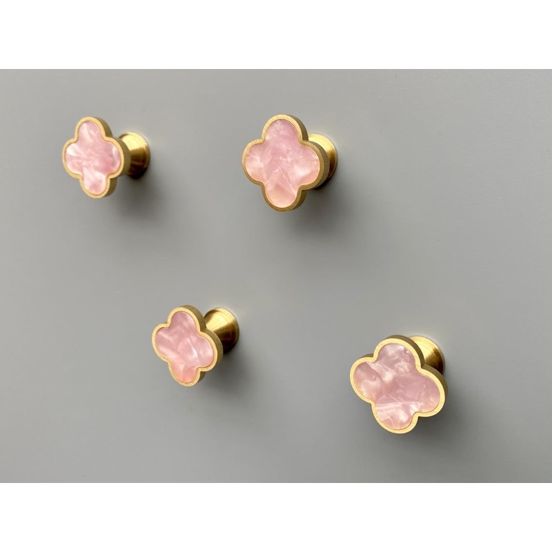 - ✔Elegant and Timeless Design: The shape of four-leaf clover, the shining gold brass and blossom pink resin centerpiece compose the contemporary and classic design of these wall hooks. These exquisite storage hooks can add a touch of fancy and festive holiday joy to any corner.