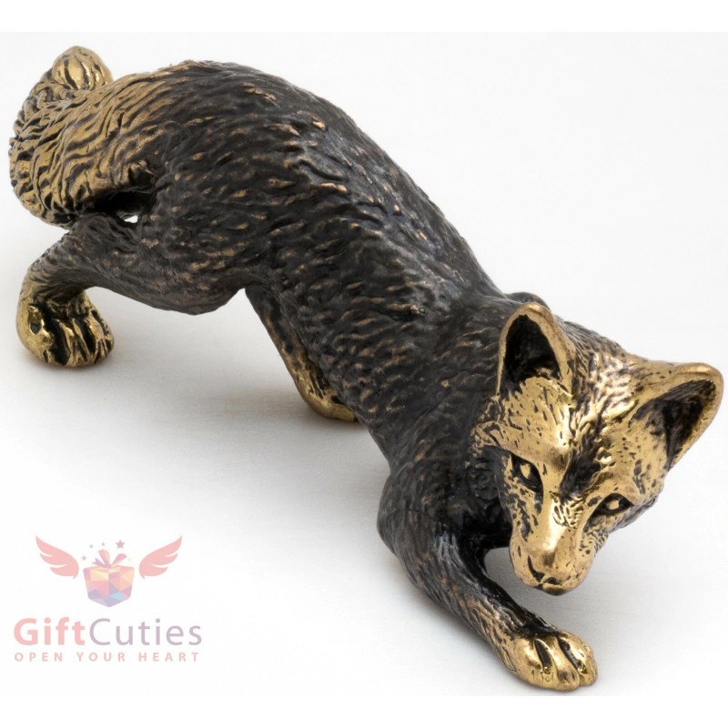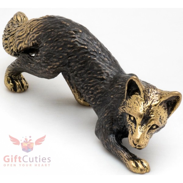 Solid Brass Figurine of Fox crouching hunting IronWork