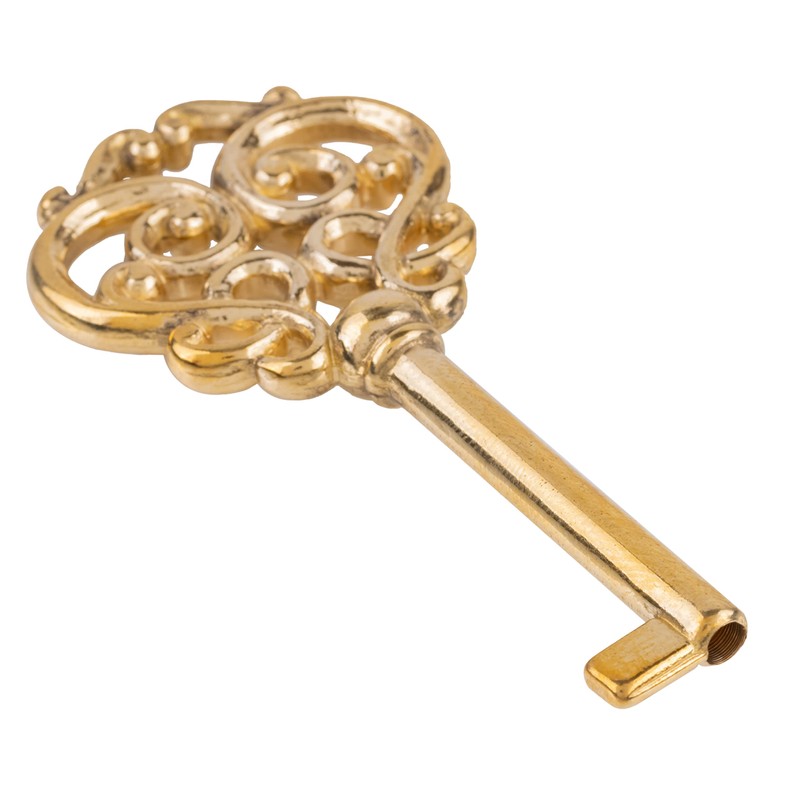 Solid Brass Hollow Barrel Skeleton Key for Cabinet Doors, Dresser Drawers, Grandfather Clocks - Antique, Vintage, Old Furniture | UA-50SK