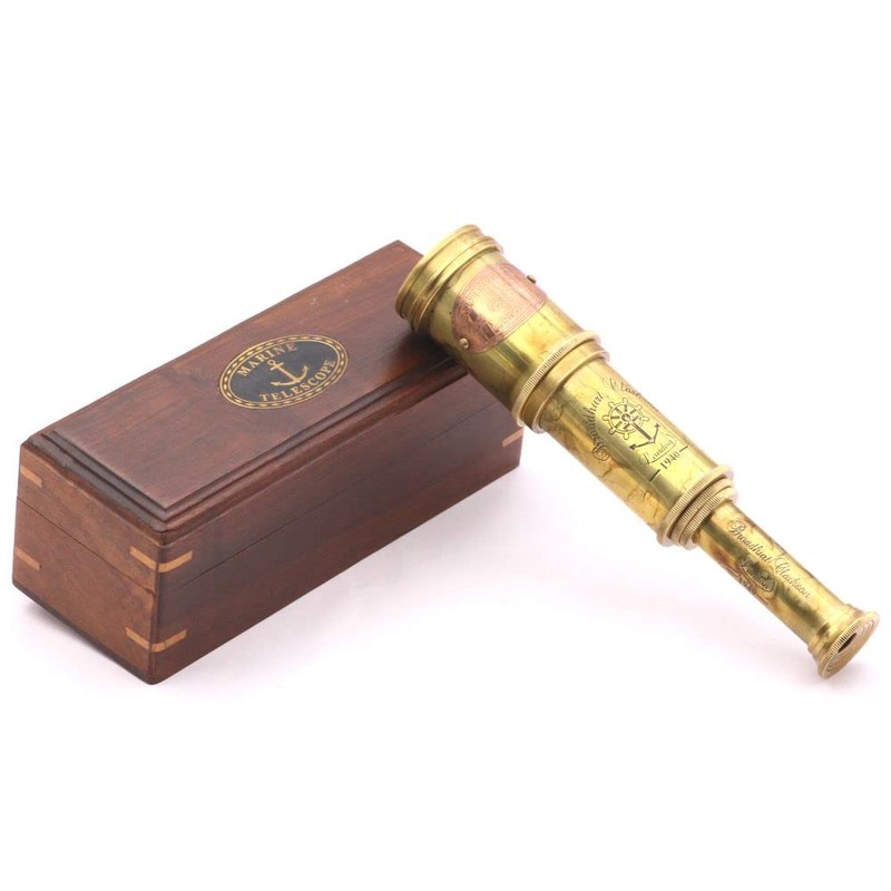 - PREMIUM QUALITY PRODUCT: Unique Scout Regiment design Telescope made of solid brass fingerprint resistance finish with Harwood storage case. Its historic old brass finish makes it look real vintage telescope. It uses push and pull mechanism to focus distant objects. It needs to pull out entirely and slowly push the barrel inside, while looking through the telescope, till the desired object becomes clear.
