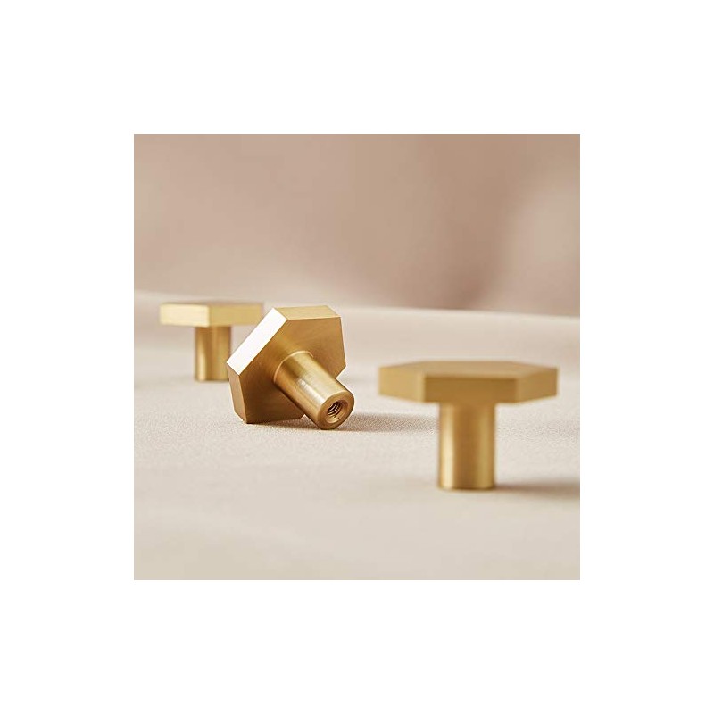Solid Brass Wall Hooks, Gold Decorative Towel Hooks, Coat Hooks, Hangers Wall Mounted, Pack of 4 (Hexagon )