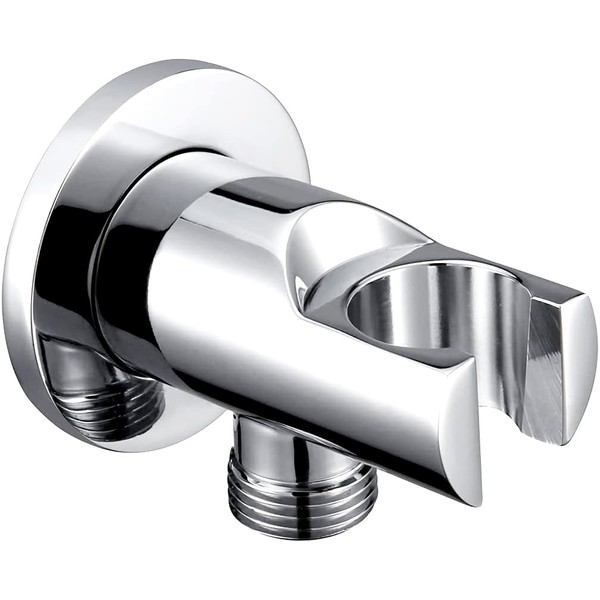 Solid Brass Wall Mount Handheld Shower Bracket Holder with Water Supply Elbow Shower Outlet Matte Silver (Silver)