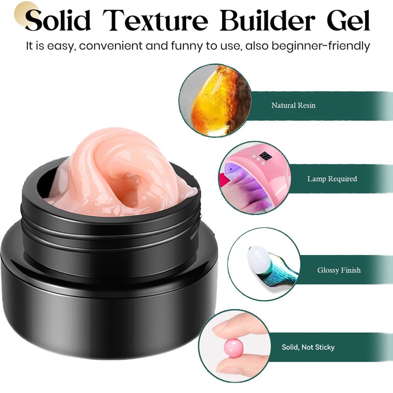 - 【Solid Sculpture Builder Gel】You will get 1*5g nude Solid Sculpture Builder Gel, this solid nail building gel is non-stick, more manageable and easy to use. It doesn't require any tools, has a hard texture and won't flow. Can create stunning nail designs anytime, anywhere. More suitable for beginners.