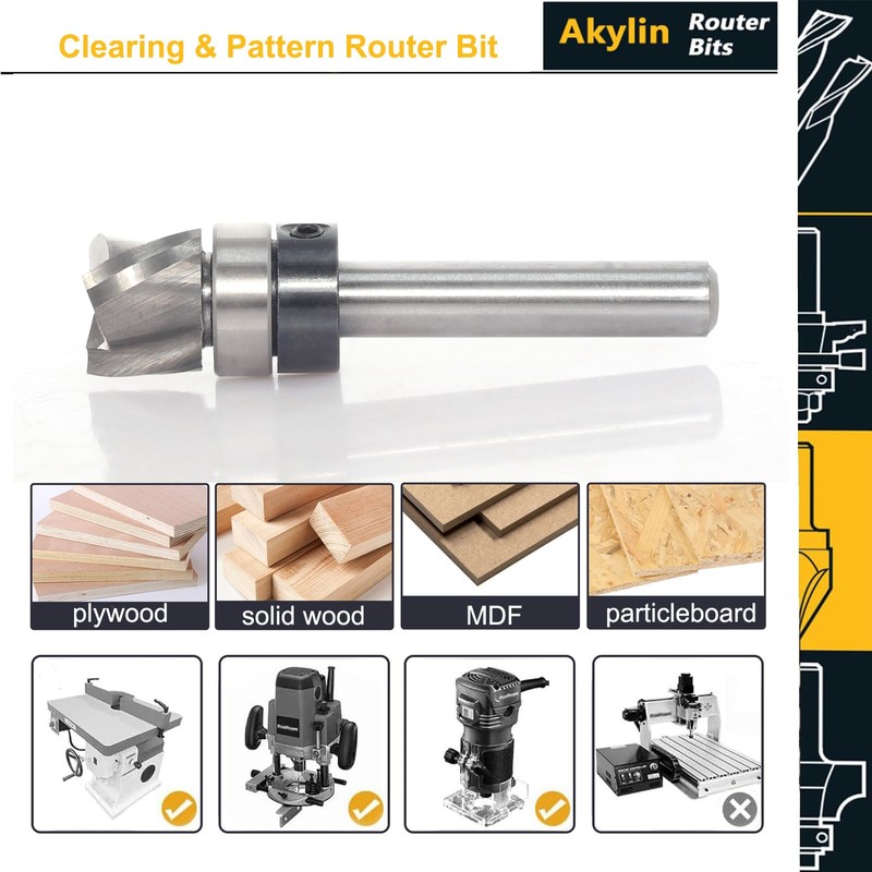 - 【Application】The bits perform well on plywood, MDF, solid woods, plastic laminates and non-ferrous metals. It can be used on hand held and table mounted routers.