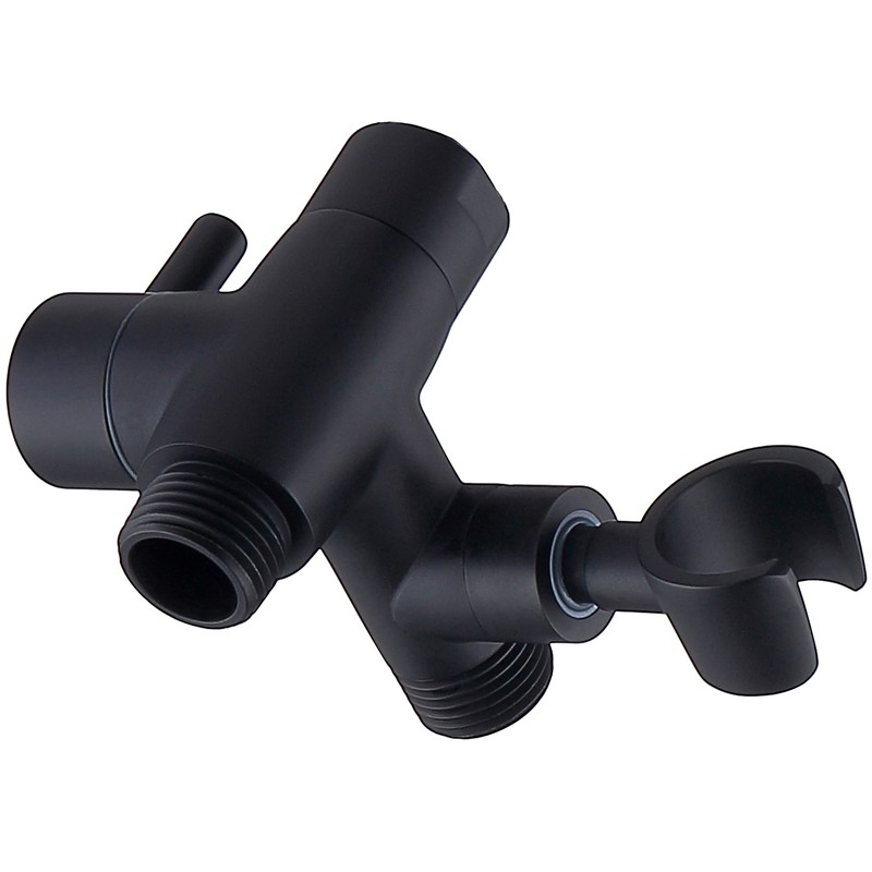 G-Promise Solid Metal Shower Arm Diverter with Holder for Hand Held Showerhead and Fixed Spray Head, G 1/2 3-Way Bathroom Universal Diverter System Replacement Part (Matte Black)
