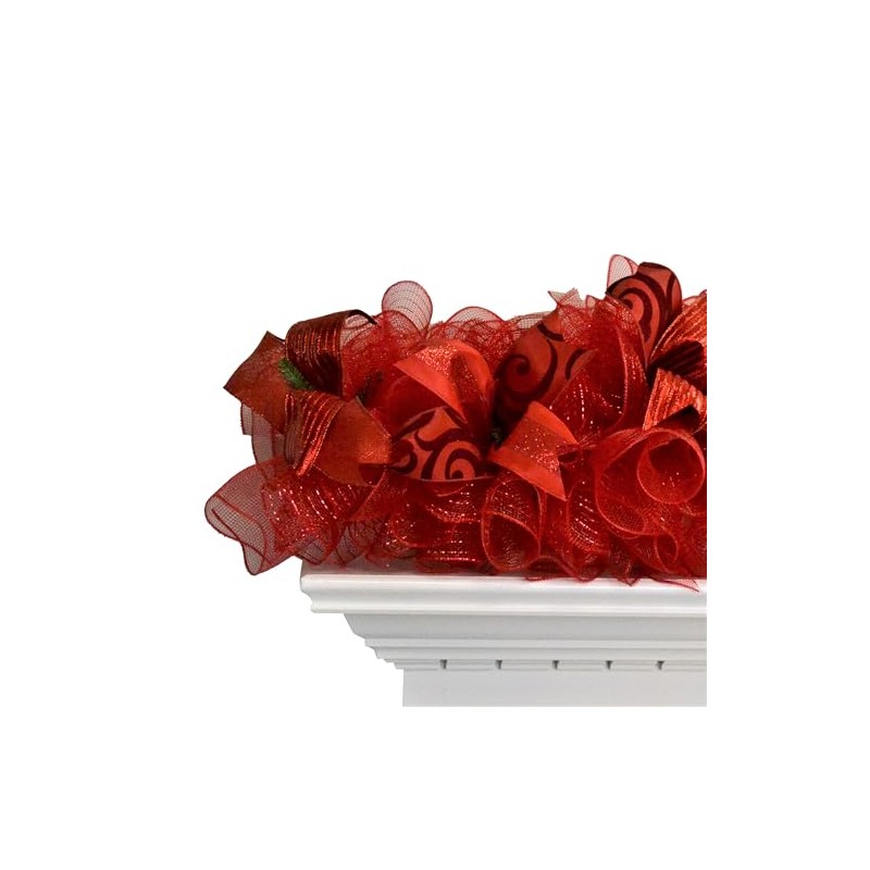 Solid Red Christmas Garland, Red Holiday Mantle Garland, Set of Coordinating Xmas Decorations for Home : TB21