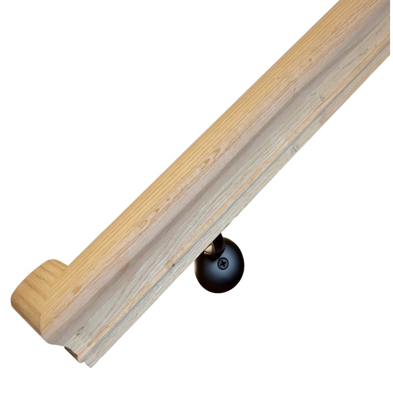 Solid Red Oak Handrail Kit with Wall Returns and Wall Mount Brackets (Matching Screws Included). 6010 Profile Unfinished. Indoor Use Only. (5 Ft, Black)