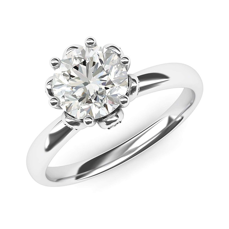 - This flower shape Sterling Silver 2CT round brilliant cut engagement ring is highly polished. It is 6-prong set with 2 carat (8mm diameter, or 0.32inches) round brilliant cut clear simulated diamond. The domed band shank measures 2.5mm in width. There are 32 stones in total set in sides. The stone is AAAAA quality, reflecting the sparkle same as diamonds do, which is very nice and attractive, making the ring look like real diamond ring.