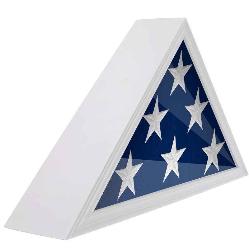 Solid Wood Flag Holder for American Veterans, Display Case for Folded American Burial Flag, Wall Mounted Flag Display Case with Glass Front, 9.5x5 Feet (White)