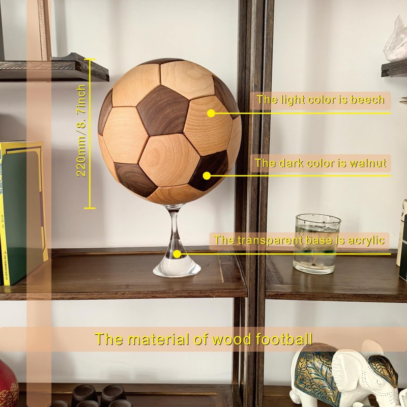 - UNIQUE CREATIVE FOOTBALL MODEL: This soccer ball model display creative hand-spliced decoration, is an excellent solid wood material, bring you a different feeling. Wood texture, density, knot, lattice quality uniform, good dryness. The color of the wood itself is yellow, suitable for furniture decoration and viewing. Suitable for study, living room, bedroom, office and so on. Through hand-carved and trimmed, processed products with artistic value have created values higher than life