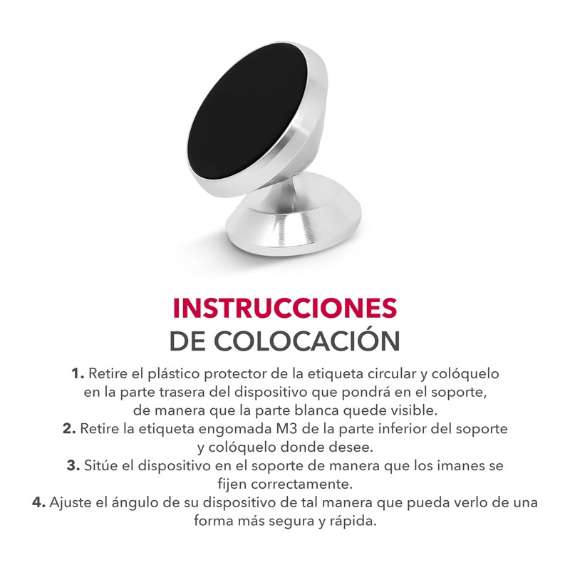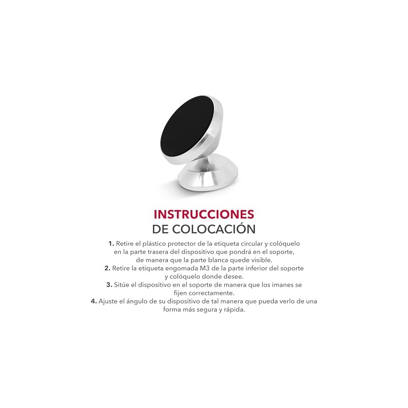 - ● INSTALACIÓN EN TABLERO O SUPERFICIE PLANA: Se adhiere fácilmente con una base adhesiva de alta resistencia, garantizando estabilidad sin necesidad de clips o perforaciones en tu automóvil.
