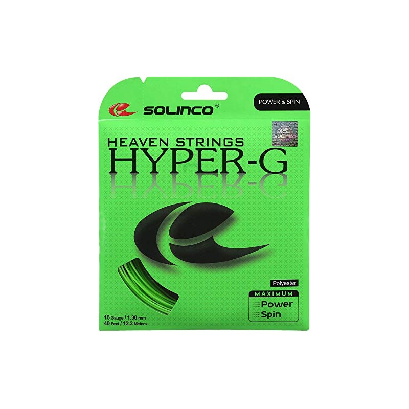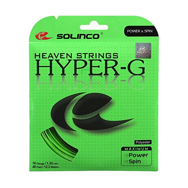 - SQUARE SHAPED POLY: Solinco Hyper-G "Heaven Strings" Poly (Polyester) 16/17/18/19/20 Gauge Tennis Racquet String Sets are a medium firm poly string that is square shaped for added spin. The snapback on these strings generate ample power and massive spin potential, and players with heavy topspin shots will be rewarded handsomely.