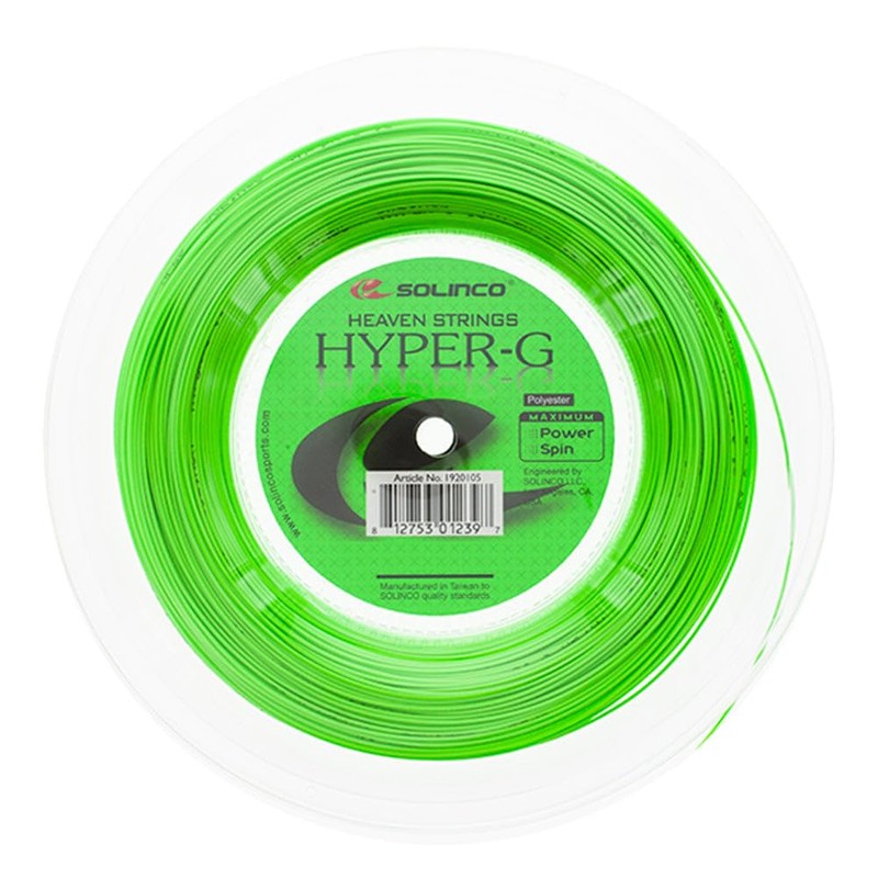 - Solinco Hyper G is the string you should be looking for in you`re in need of huge amounts of spin thanks to its square profile.
