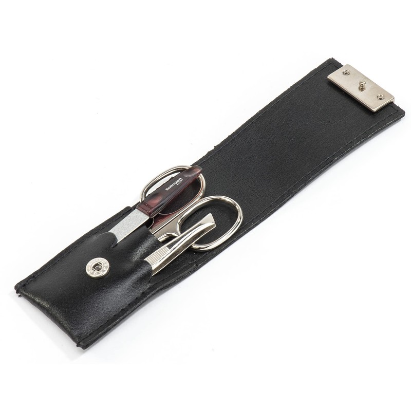 Solingen Manicure Set with Leather Case, Nail Scissors, File, Tweezers (Black)