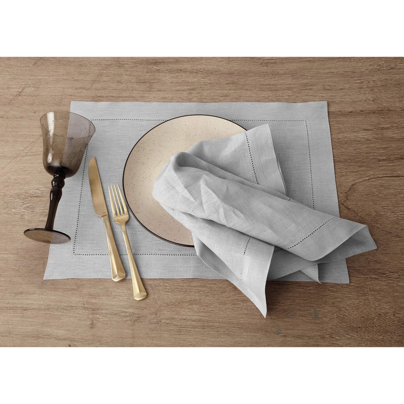 Solino Home 100% Pure Linen Hemstitch Dinner Napkins - 20 x 20 Inch, Soft Grey Set of 4, European Flax, Natural Fabric Machine Washable Classic Hemstitch - Handcrafted with Mitered Corners