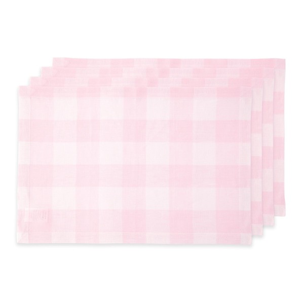 Solino Home Buffalo Check Linen Placemats 19" L x 14" W Inch - 100% Pure Linen Marshmellow Pink Plaid Cloth Placemats Set of 4 - Washable Fabric Checkered Place Mats for Spring, Easter